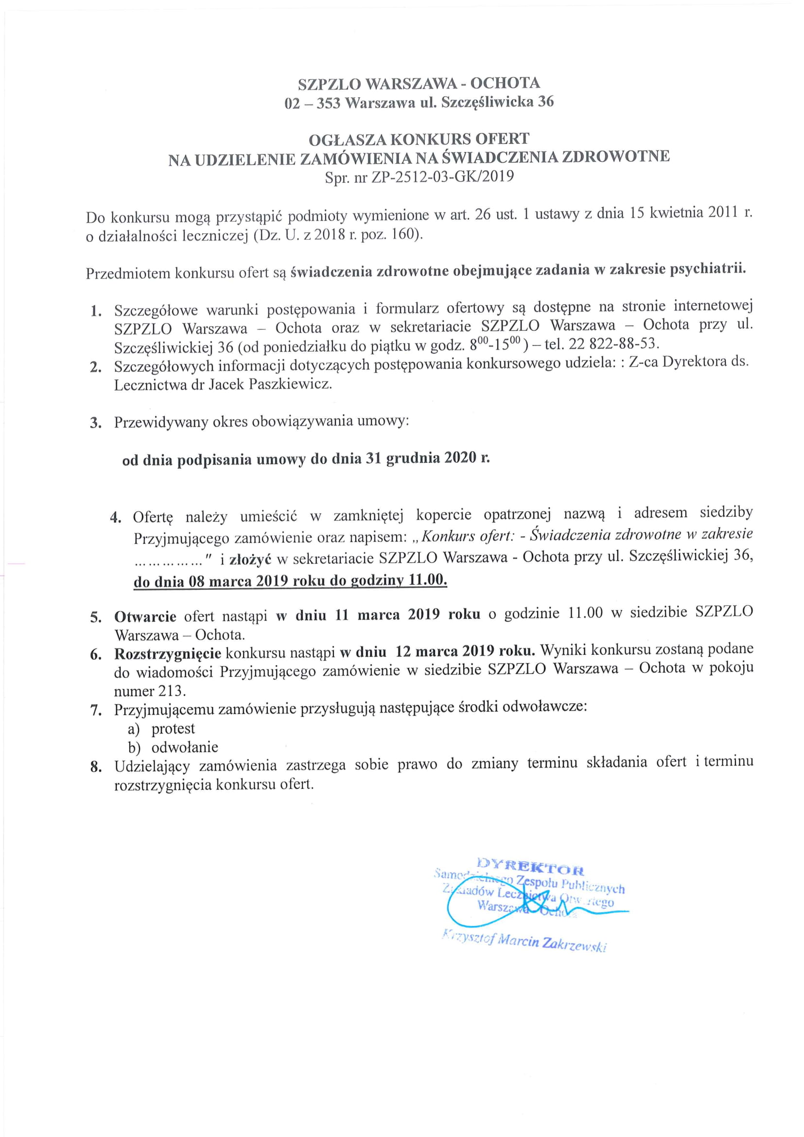 Zarządzenie Dyrektora SZPZLO Warszawa-Ochota