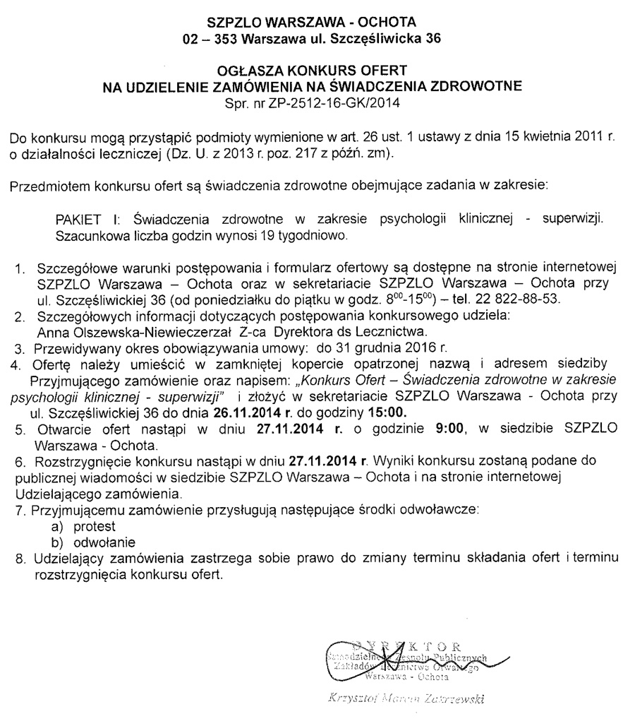 Ogłoszenie o rozstrzygnięciu konkursu - 27.11.2014
