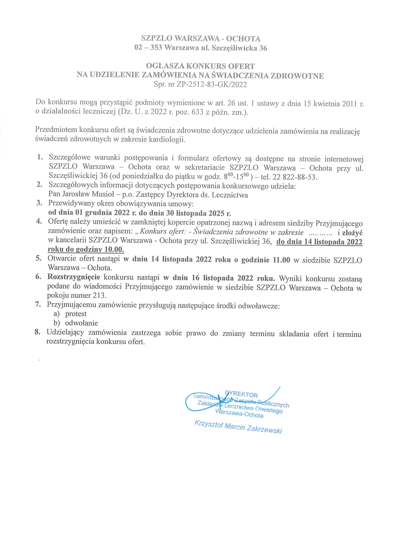 Konkurs na udzielenie zamówienia na realizację świadczeń zdrowotnych z zakresu kardiologii.
