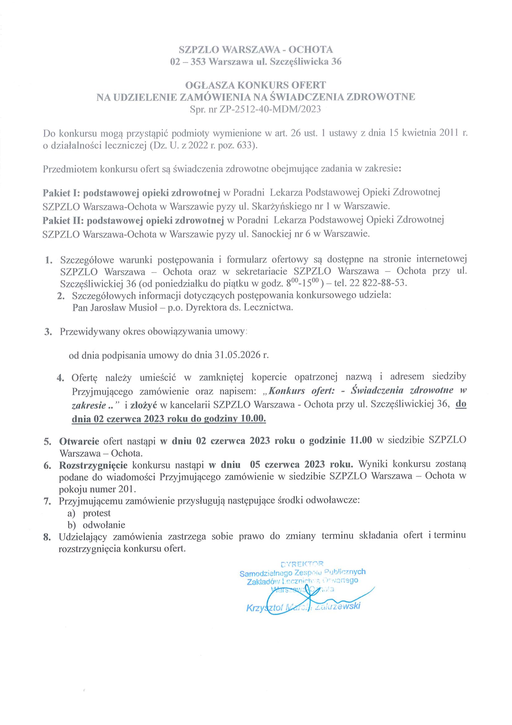 KONKURS OFERT NA UDZIELENIE ZAMÓWIENIA NA ŚWIADCZENIA ZDROWOTNE w zakresie: podstawowej opieki zdrowotnej