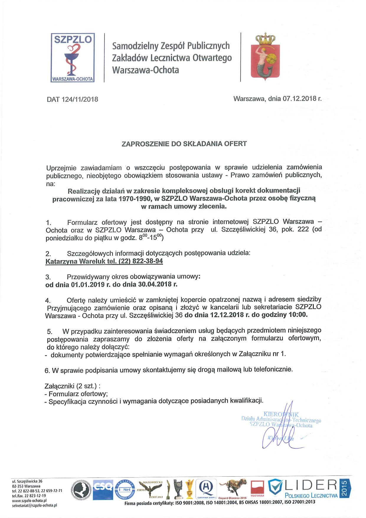 Realizacja działań w zakresie kompleksowej obsługi korekt dokumentacji pracowniczej za lata 1970-1990