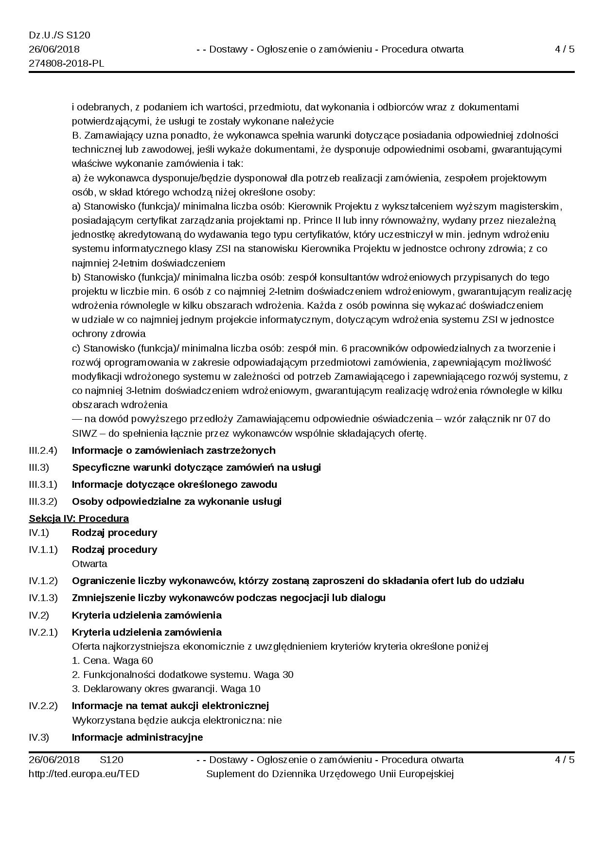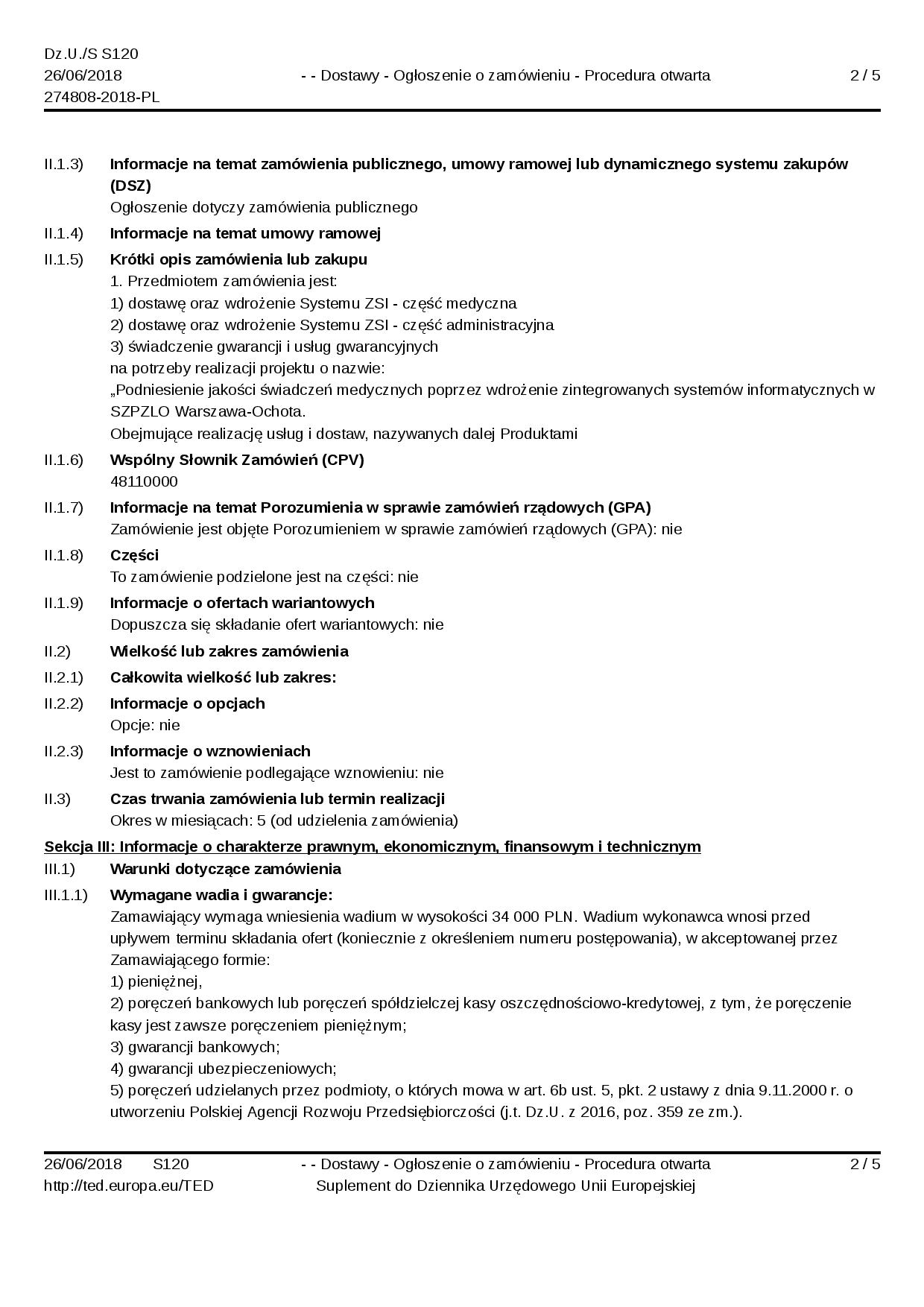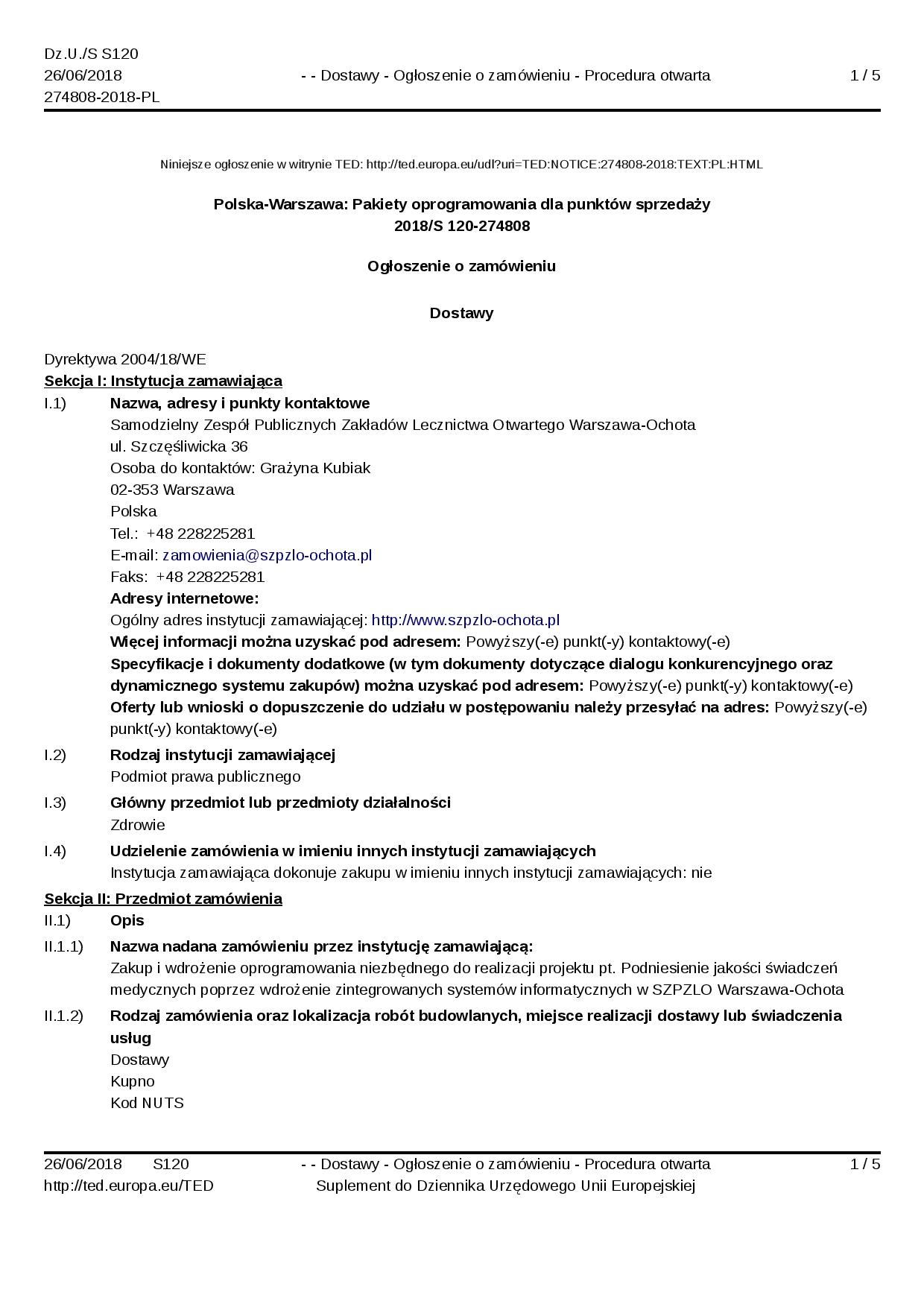 Zakup i wdrożenie oprogramowania niezbędnego do realizacji projektu pt "Podniesienie jakości świadczeń medycznych poprzez wdrożenie zintegrowanych systemów informatycznych w SZPZLO Warszawa-Ochota