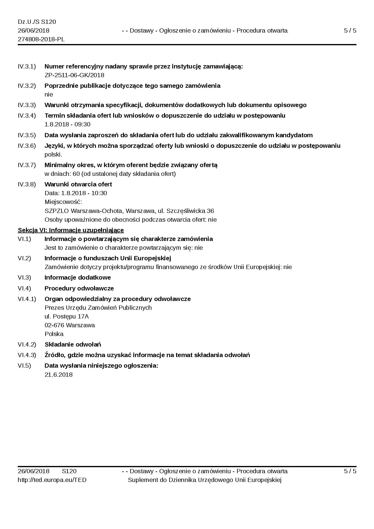 Zmiana terminu składania ofert z dnia 08.08.2018