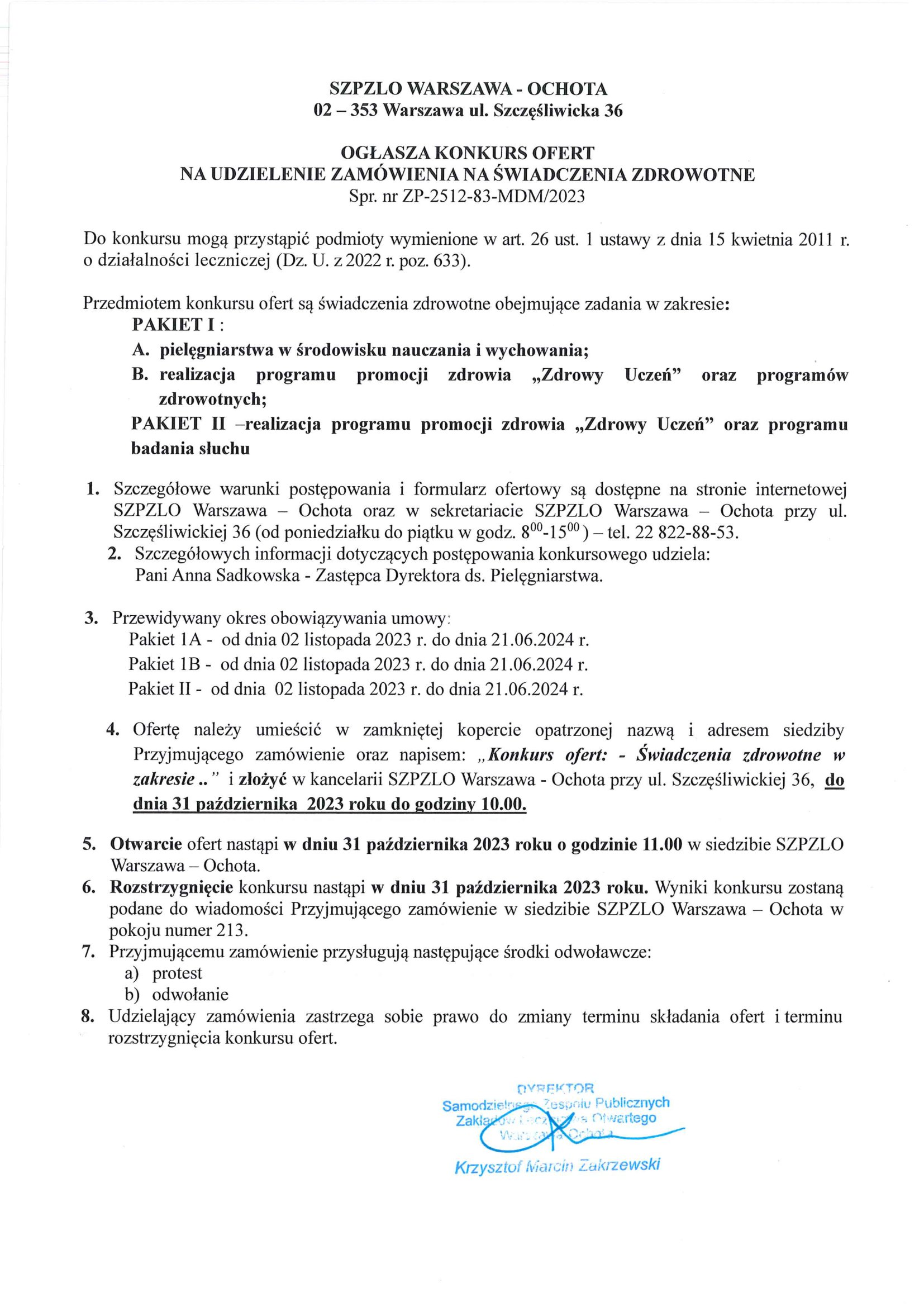 KONKURS OFERT NA UDZIELENIE ZAMÓWIENIA NA ŚWIADCZENIA ZDROWOTNE w zakresie:pielęgniarstwa w środowisku nauczania i wychowania promocji zdrowia „Zdrowy Uczeń” oraz programu badania słuchu